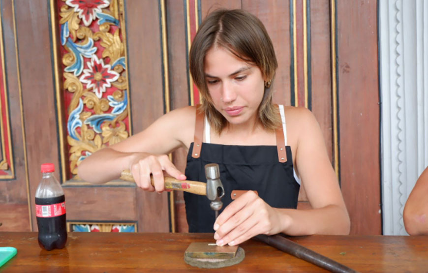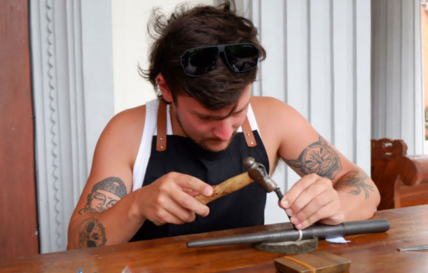 Using 100% real silver in the process of making classy silver jewelry and a 7.5% copper mixture which results in a purity level of 92.5%. Free with your own unique design to make rings, pendants, earrings with 5 grams of material and a bonus of 2 grams if needed. Traditional unique learning with step by step in detail regarding the process by local instructor silversmith and introduction of tools during silver making program class.