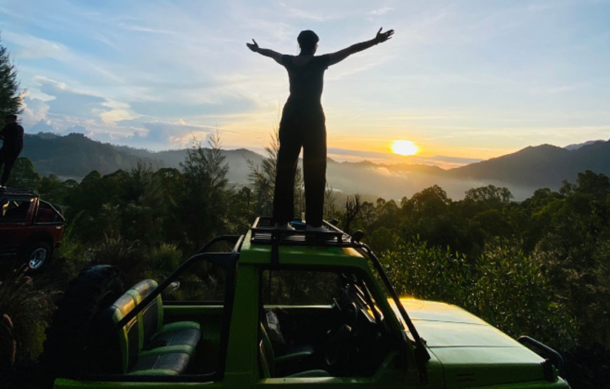 Mount Batur Jeep Tour Witness the surise from Bali most active volcano a 4WD Classic Jeep & Experience the volcano lava flow without hiking walking. This Mount Batur Jeep Tour drive by 4WD Classic Jeep From 1.365 Meter above sea level and enjoy stunning amazing sunrise from the roof Jeep.